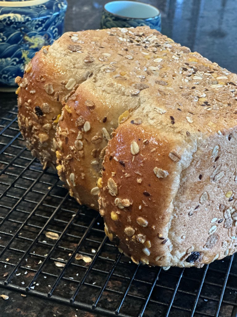 9. Pre heat the oven to 360 Fahrenheit. Bake 35 – 40 minutes. Tent with foil in 10 -15 minutes. Move the oven a cooling rack and cool for about 30 minutes.