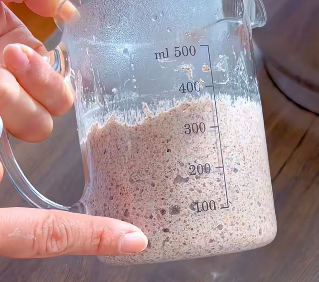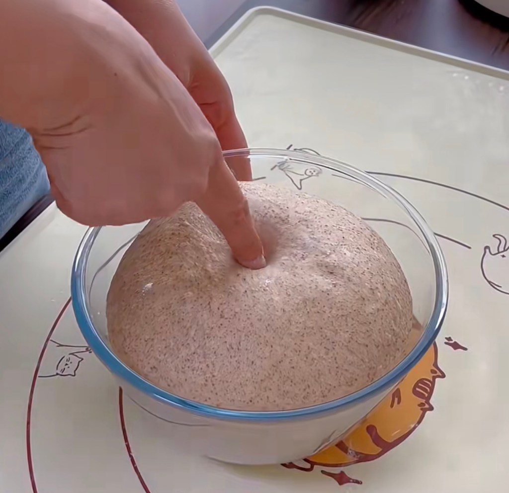 - Make the starter at least 8 hours prior or overnight. Mix 100g wholemeal flour + 100g water+1/2 tsp yeast together in a container and cover with a lid. It becomes three times bigger when ready.