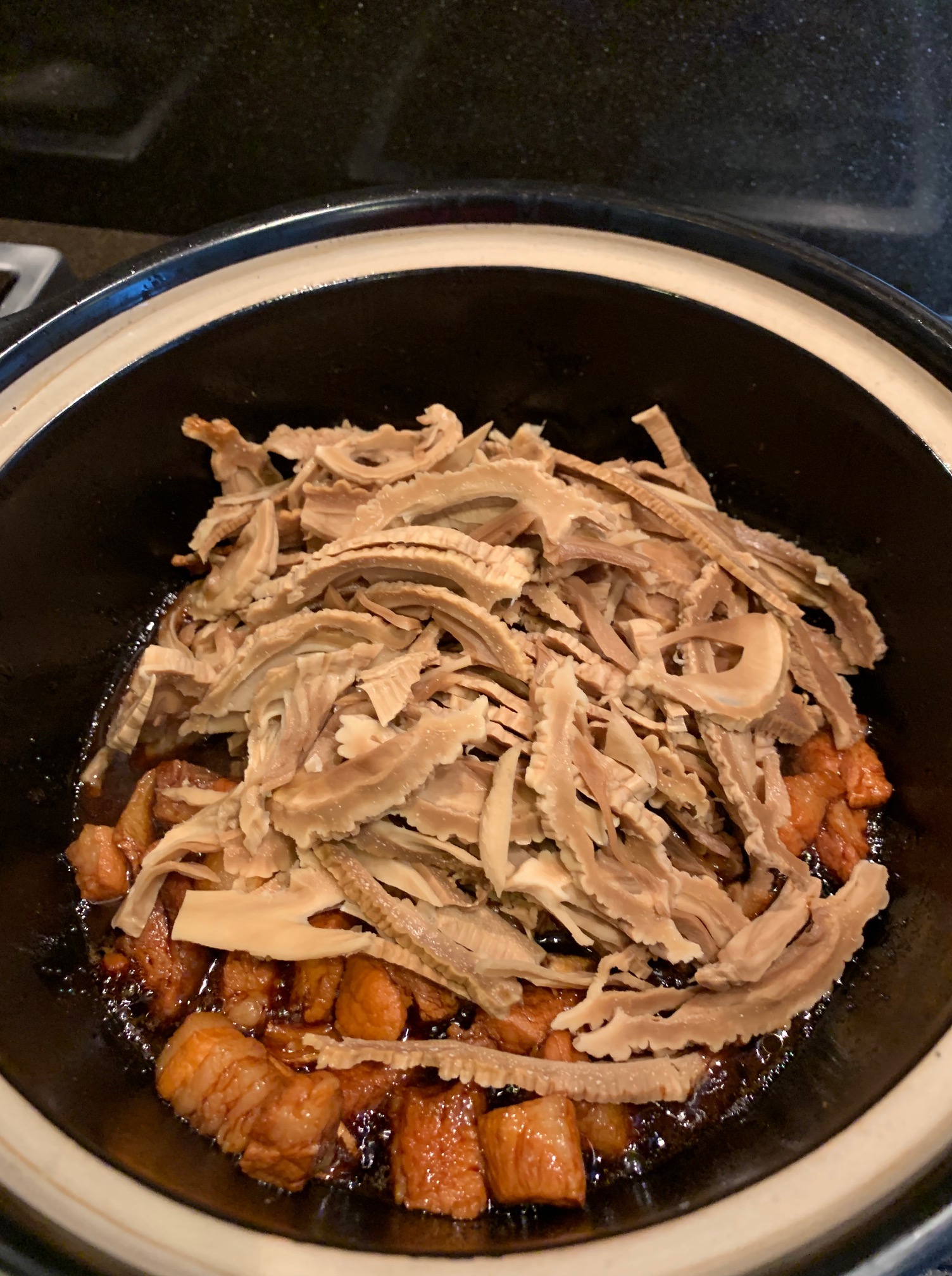 Red-braised Dried Bamboo Shoots笋干烧肉sǔn gàn shāo ròu