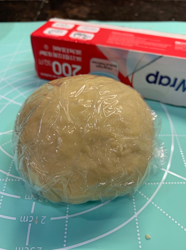 2. Turn the dough out onto a lightly floured board and knead it until smooth for about 5-6 minutes. Cover the dough with clingy film. Rest for 30 minutes.